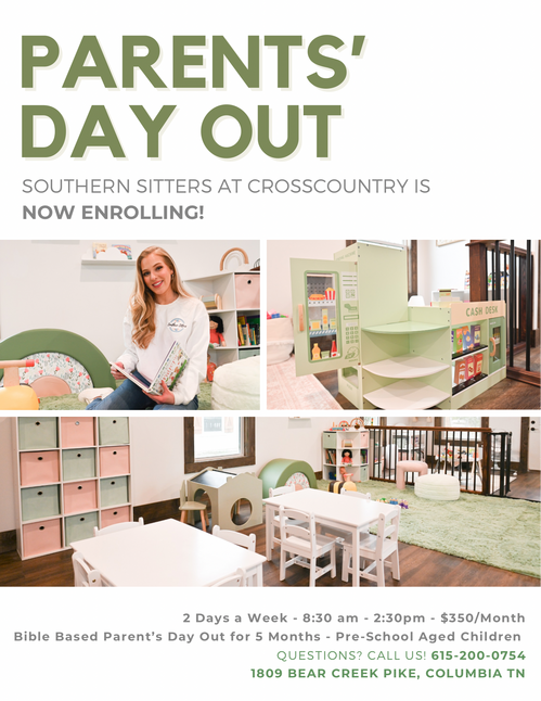 We are thrilled to announce our new partnership with Southern Sitters, an exceptional childcare company, to launch a Parents Day Out program right here at 4C! Our goal is to create a fun, loving environment where your little ones can grow in their love for Jesus.